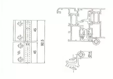 The heavy duty hinge is the most efficacious solution for the realisation of doors/frames of considerable dimension and weight. It can be entirely mounted on the pre-assembles frame, thanks to the fast adjustments in the three directions, made without the disassembling of the carters and the removing of the window leaf. This operation can be effected also by one person and is facilitated by the presence of immediately visible incisions. Hinges are available for different interaxes: 60-79