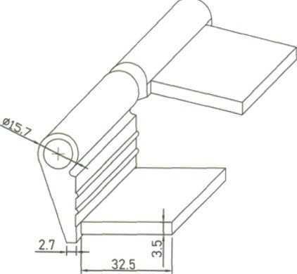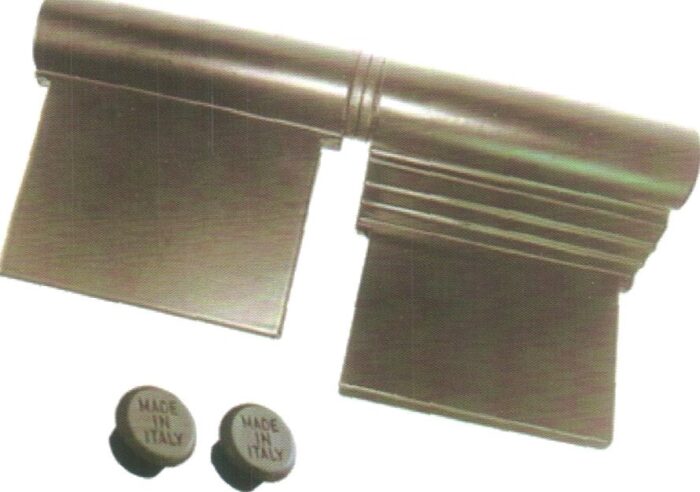 Reversible two-winghinge, made from aluminium, galvanized steel expansion pin, and molybdenum bisulphate bushing.