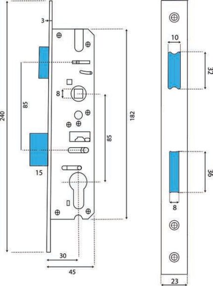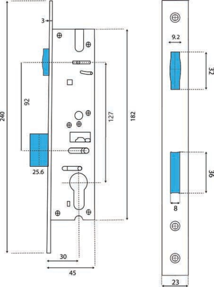 With its innovative modular design, locks allows for many applications on narrow stile (aluminium and PVC) door systems. Due to their reversible latch-bolt, the locks are non-handed (DIN L.H / DIN R.H usable). Moreover, the burglary-inhibiting locks are suitable for use on fire pro-tection and escape doorsADLER mortise lock
