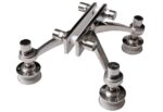 Three arms spider fitting used to attach three inline glass panels to structural center fin