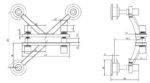 One arm spider fitting used to attach single glass panel to wall or structural glass fin