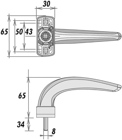 Double handle with die-cast aluminium shaft, It has an easy moving cover screws case, planned for the ambidextrous rotation without any modification, Different solutions available for the assembling: with auto threading screws or with the use of metrical screws and rivets. The double internal recovery spring assures a perfect horizontal alignment. Die-cast aluminium handle, box,